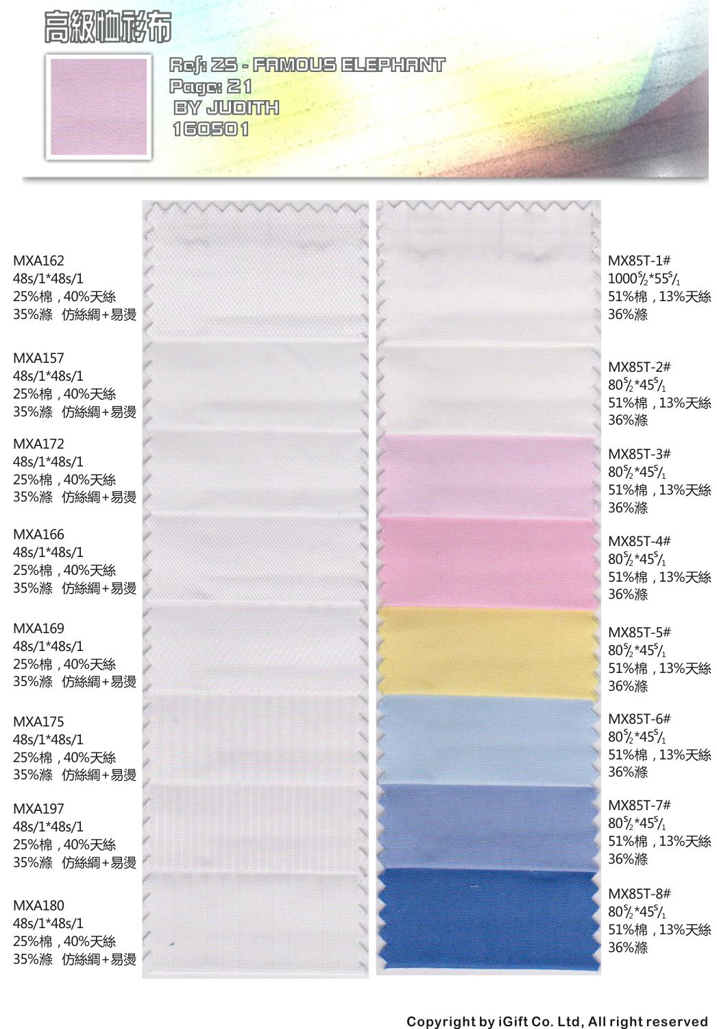適用產品 布料參考編號 來源