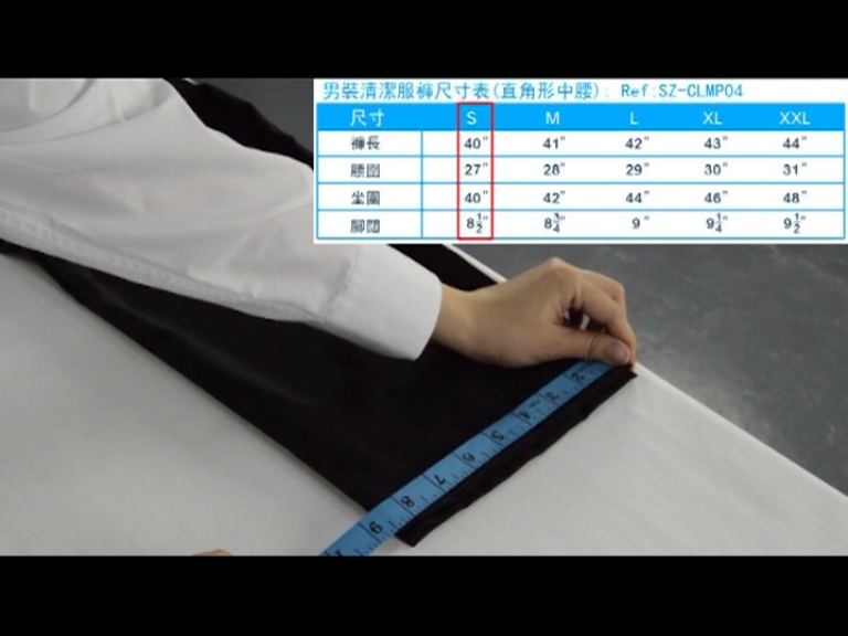 1. 男裝清潔服尺寸一般需要四個數據,褲長,腰圍,坐圍和腳闊