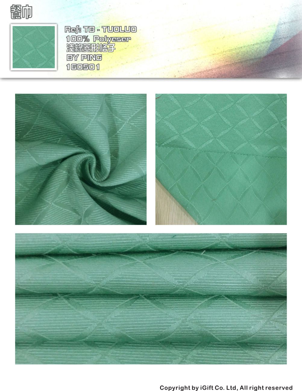 TB-TOLO 餐巾-淺綠菱形格子  餐飲布草  成份:100%Polyester 正面照
