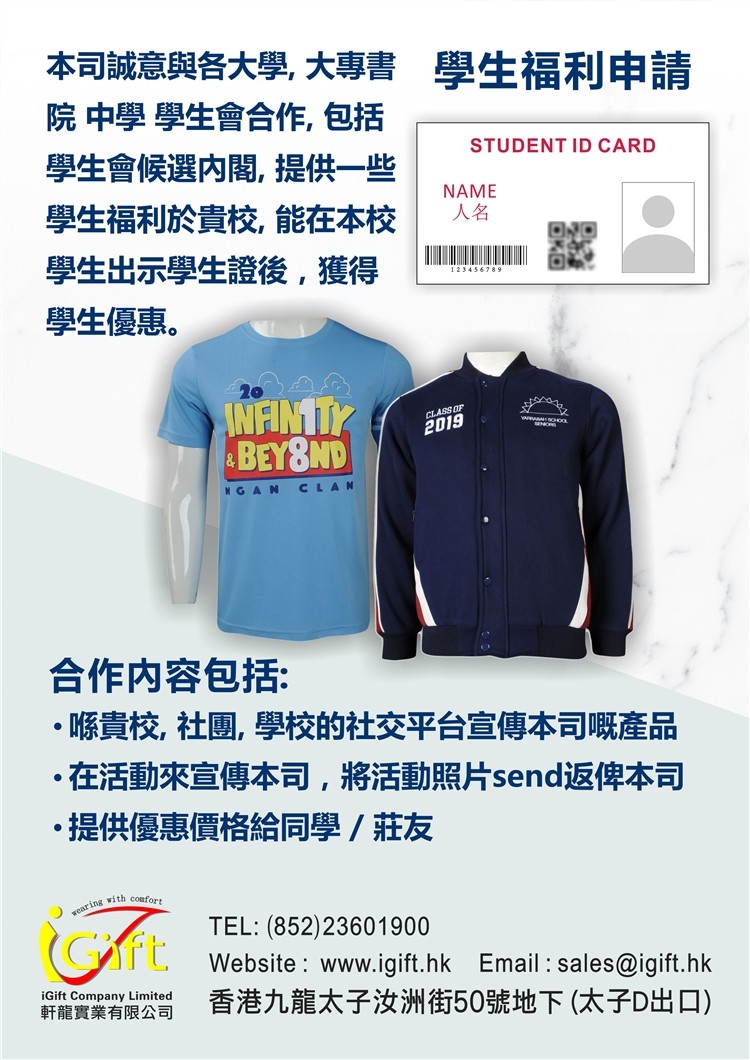 本司誠意與各大學, 大專書院 中學 學生會 合作, 包括學生會候選內閣, 提供一些學生福利於貴校, 能在本校學生出示學生證 後,獲得學生優惠, 合作內容包括: