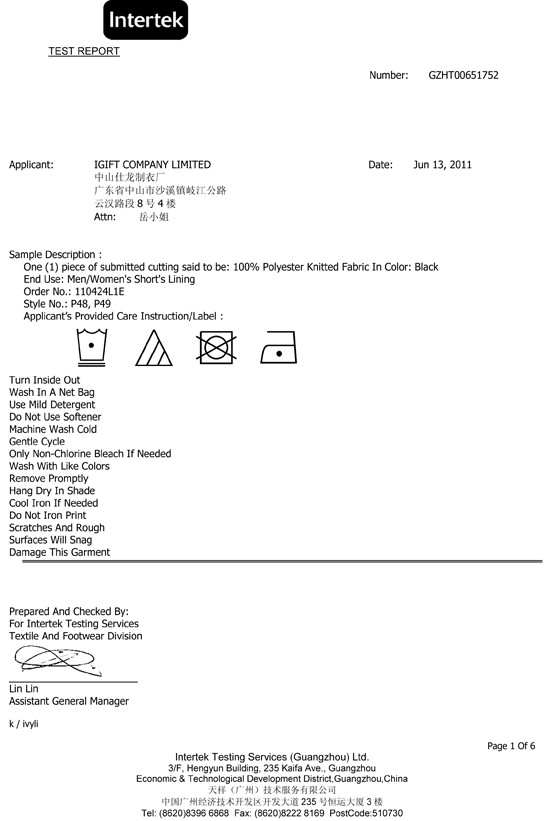 Through corporation with renown customers, we developed testing and inspection prodcedures which could satisfy different customers' quality requirements. From physical strength test, washing test, fastness test to heavy metal and harmful chemical test, iGift could provide full range of test to ensure that our product is up to different requirements from Oeko-text Standard Class 1, REACH, National General Safety Technical Code for Textile Products (GB Standard), and the Consumer Product Safety Improvement Act (CPSIA) which regulates the phthalates and lead for children's product with age 12 or under.